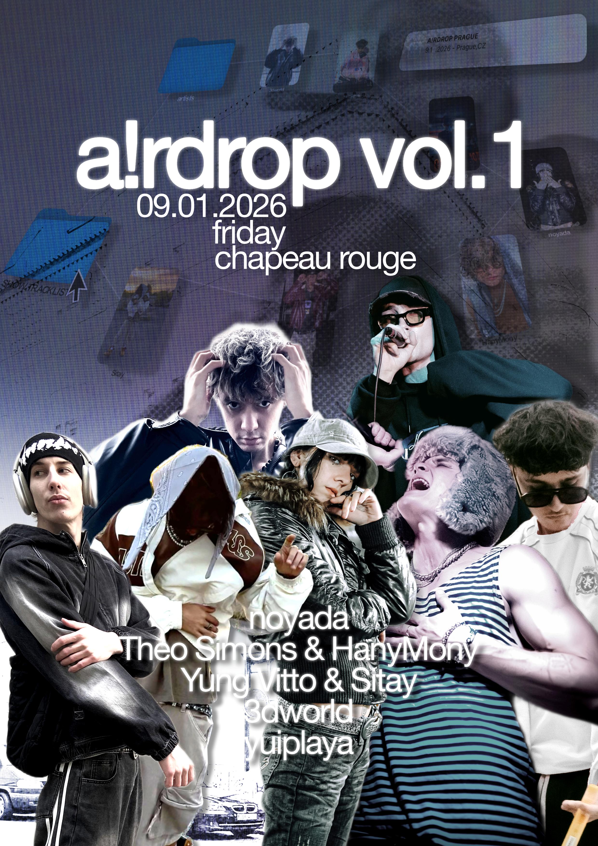 - Pátek 9.1.2026 / A!r Drop - Noyada+3dworld - Live Concert - Noyada , 3dworld , Theo Simons , HanyMony , Yung Vitto , Sitay